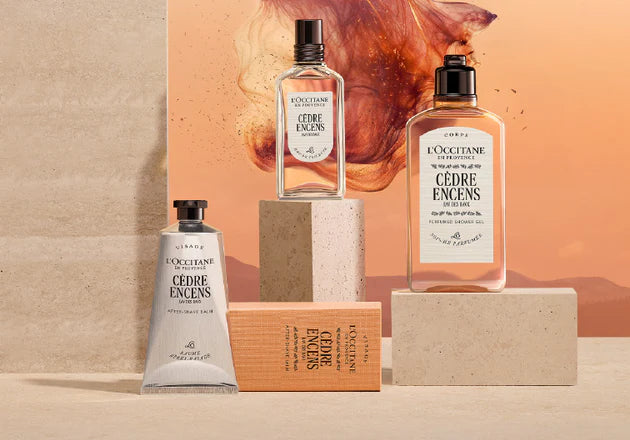 La línea Cèdre Encens, tiene una mezcla de madera e incienso, para un efecto misterioso y sensual, además es símbolo de fuerza y coraje