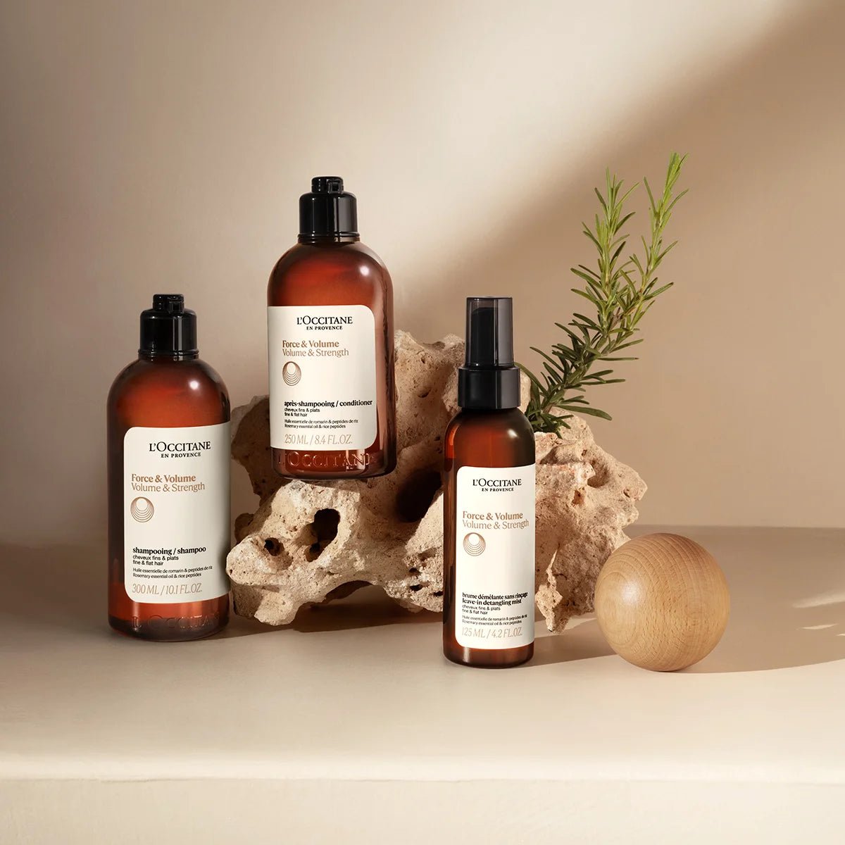 Utilízalo después del champú y acondicionador Fuerza & Volumen para una rutina capilar completa.