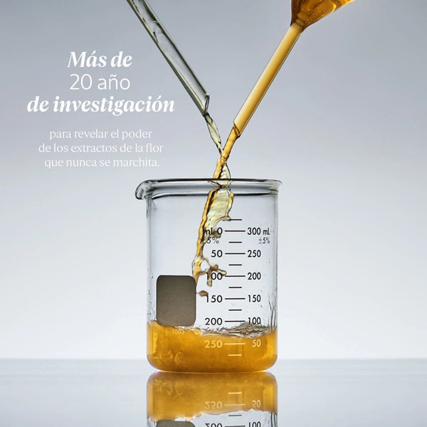 Este tratamiento antiedad global está enriquecido con extracto de Siempreviva orgánica de Córcega, una alternativa natural al Retinol.
